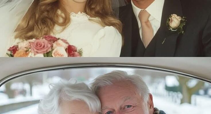 Sixty years ago, in a quaint chapel filled with loved ones, a young couple joyfully exchanged their vows, their faces beaming with happiness and hearts brimming with dreams. The bride, radiant in her elegant white dress, held a lovely bouquet of roses, her eyes sparkling with anticipation. The groom, looking sharp in his suit, grasped her hand with confidence, ready to embark on an unpredictable journey that they were eager to face together.